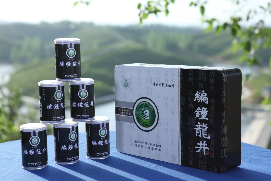 编钟龙井茶由随州神农茶业有限公司创制而成。该茶外形扁平挺秀,其色泽绿翠,鲜艳有光,香气清高鲜爽,滋味甘醇,汤色清冽如玉,素以“色绿、香郁、味甘、形美”四绝著称,实乃茶之上品。细品其韵味犹如古老而神秘的编钟音律,故名“编钟龙井茶"。