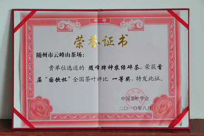“随峰牌神农绿碎茶”荣获首届“国饮杯”全国茶叶评比“一等奖”