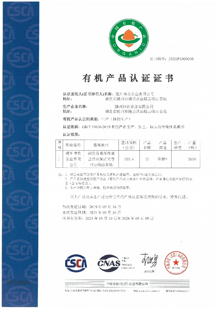 国标有机认证证书